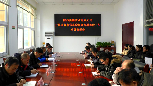 1月4日下午,美鑫礦業(yè)公司召開專題會議,傳達貫徹陜西美鑫產業(yè)投資有限公司“集中開展違規(guī)收送禮金問題專項整治工作動員部署會”會議精神。公司黨政班子成員、部門負責人、全體黨員及重要崗位管理人員共三十余人參加了會議。會議由礦業(yè)公司黨支部書記、總經理郭百強同志主持。 首先,會議傳達學習了“中共陜西美鑫產業(yè)投資有限公司委員會關于轉發(fā)有色集團黨委《關于集中整治形式主義、官僚主義的通知》的通知、《中共陜西美鑫產業(yè)投資有限公司委員會關于印發(fā)集中開展違規(guī)收送禮金問題專項整治工作實施方案的通知》文件及公司領導“五個到位”重要講話精神,對礦業(yè)公司下一步集中整治形式主義、官僚主義工作進行了安排部署。 會議要求:一是要高度重視,要清醒認識全公司自上而下整治形式主義、官僚主義的工作力度,及時將會議精神傳達到全體干部職工之中。要將作風建設作為全公司樹立良好形象、促進工作開展的有力抓手,持之以恒的堅持下去。二是全體黨員干部要從自身做起,管好隊伍帶好人,起模范帶頭作用。三是各部門要結合專題會議精神,廣泛開展糾正“四風”大討論活動。充分查找解決工作中存在的作風問題。四是嚴格把好春節(jié)期間廉潔關,自覺遵守中央八項規(guī)定和上級各項紀律規(guī)定,嚴禁參加參建單位和供應商的宴請,營造風清氣正的節(jié)日氛圍。五是嚴格遵守黨員領導干部重大事項申報制度,上報個人婚喪嫁娶等重大事項。同時,礦業(yè)公司向職工群眾公布了黨風廉政建設舉報電話,設置了意見箱,充分發(fā)揮了群眾監(jiān)督檢舉作用,確保廉潔建設各項工作落在實處。