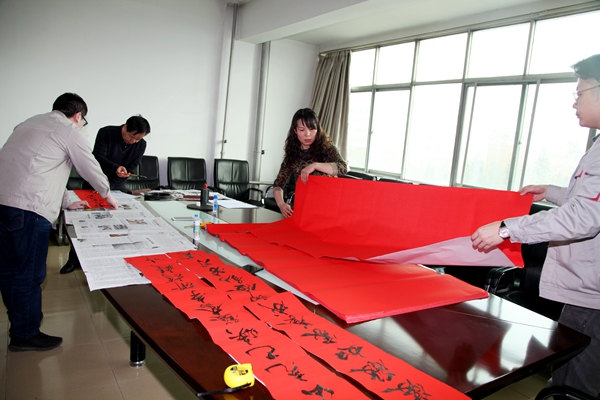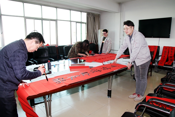 新春臨近,千家萬(wàn)戶都要張貼春聯(lián),是象征吉祥、表達(dá)人們向往美好生活的傳統(tǒng)風(fēng)俗。1月31日,美鑫公司特邀書法愛(ài)好者書寫春聯(lián),將節(jié)日的祝福提前送到員工身邊。 只見書法老師在提前裁好的紅紙上盡情潑墨、筆走龍蛇,一張張散發(fā)著清新墨香的喜慶大“福”字,多種書體龍飛鳳舞各顯神韻,一副副春聯(lián)盡顯眼前。機(jī)關(guān)辦公樓的職工也紛紛聞?dòng)嵹s到現(xiàn)場(chǎng)觀看書法老師書寫對(duì)聯(lián),不時(shí)發(fā)出一聲聲驚嘆,也為書法老師出色的毛筆字喝彩。看,那對(duì)聯(lián)的內(nèi)容也是相當(dāng)?shù)呢S富:有對(duì)美鑫的祝福“以人為本科學(xué)發(fā)展循環(huán)經(jīng)濟(jì)結(jié)碩果,砥礪奮進(jìn)逐夢(mèng)前行示范園區(qū)譜新篇”,也有年輕人對(duì)新年的期望“暴瘦”等。 “煤電鋁循環(huán)打造千秋昌盛,可持續(xù)發(fā)展鑄就輝煌大業(yè)。”書法老師為美鑫公司書寫了幾十副對(duì)聯(lián),為年輕人也送出了新年期望十余張字。拿到祝福的職工也紛紛對(duì)老師表示感謝,希望自己在新的一年中能夠向手里春聯(lián)寫的那樣:快樂(lè)、暴瘦、暴美。 |