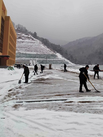 紛紛揚(yáng)揚(yáng)的小雪突如其來(lái),美鑫礦業(yè)公司冶坪煤礦十里礦區(qū),銀裝素裹,分外妖嬈。為保障人員出行安全,公司組織人員鏟除路面積雪。