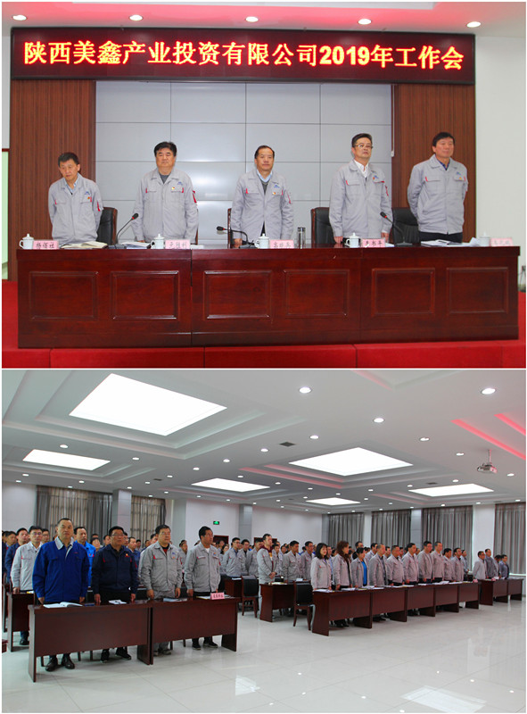追趕超越奮進(jìn)新時(shí)代,擔(dān)當(dāng)實(shí)干展現(xiàn)新作為。4月3日上午,公司在二樓會(huì)議室召開了2019年工作會(huì)。會(huì)議深入學(xué)習(xí)貫徹了黨的十九大精神和集團(tuán)公司工作會(huì)精神,回顧總結(jié)2018年主要工作,安排部署2019年重點(diǎn)工作,為今年奮力前行統(tǒng)一思想、凝集共識(shí)、指明方向。公司領(lǐng)導(dǎo)班子成員,機(jī)關(guān)全體人員,各基層單位負(fù)責(zé)人,職工代表、監(jiān)理單位、設(shè)計(jì)單位、施工單位代表等,共計(jì)150余人參加了會(huì)議。會(huì)議由黨委副書記、紀(jì)委書記李書平主持。 黨委委員、副總經(jīng)理、總工程師元?jiǎng)倮髁祟}為《精心部署 真抓實(shí)干 — 全面開創(chuàng)公司高質(zhì)量高效益發(fā)展新局面》的工作報(bào)告。2018年,陜西美鑫公司全面貫徹十九大和習(xí)近平總書記系列重要講話精神及中央、省和集團(tuán)公司決策部署,在集團(tuán)公司的正確領(lǐng)導(dǎo)下,在各級(jí)政府大力支持下,緊緊圍繞全年目標(biāo)任務(wù),以破解發(fā)展不平衡不充分問(wèn)題為導(dǎo)向,全力推進(jìn)各個(gè)項(xiàng)目施工建設(shè),狠抓生產(chǎn)經(jīng)營(yíng)各項(xiàng)工作,安全、環(huán)保和穩(wěn)定工作平穩(wěn)發(fā)展,黨的建設(shè)得到全面加強(qiáng)。 全體人員奏唱《國(guó)歌》