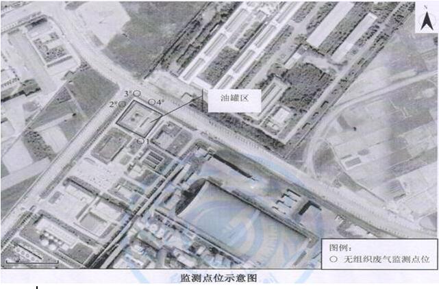 (2)監(jiān)測(cè)點(diǎn)位:油罐四周上風(fēng)向設(shè)2個(gè)監(jiān)測(cè)點(diǎn)、下風(fēng)向設(shè)2個(gè)監(jiān)測(cè)點(diǎn)。