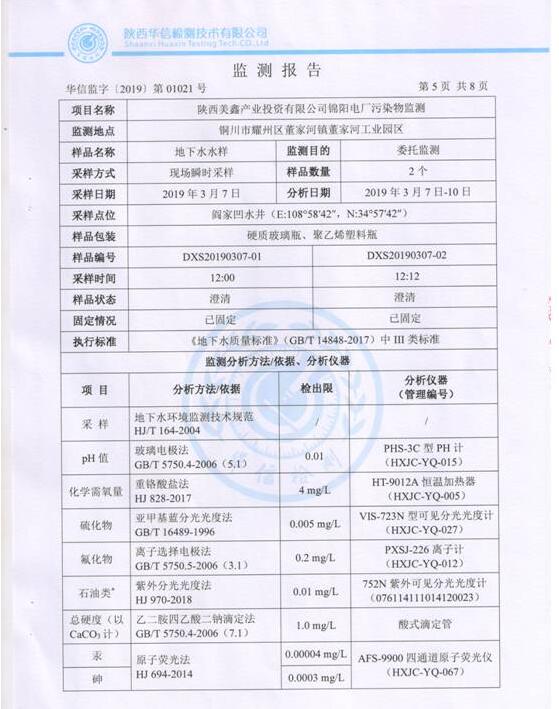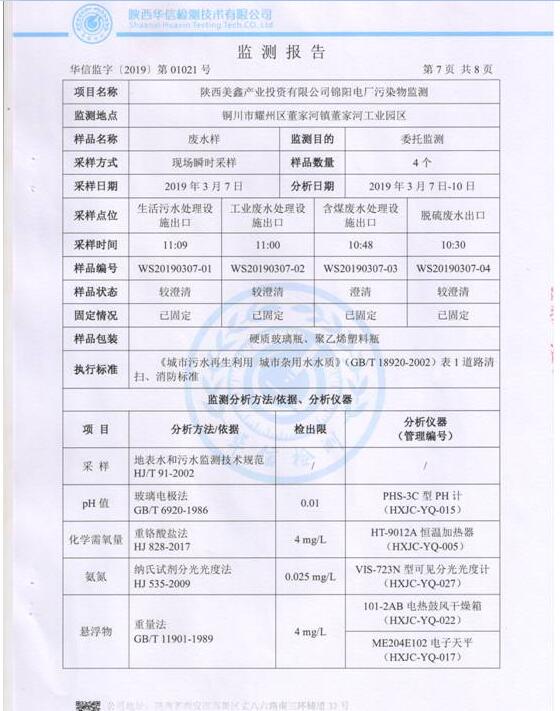(3)監(jiān)測(cè)頻次:每月監(jiān)測(cè)一次(脫硫廢水不外排,監(jiān)測(cè)頻次可按季度監(jiān)測(cè)一次執(zhí)行),連續(xù)監(jiān)測(cè)1天,每天監(jiān)測(cè)2個(gè)水樣。