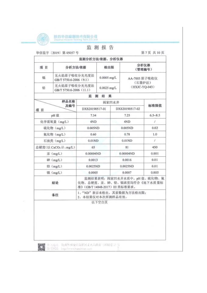 (1)監(jiān)測指標:pH值、化學需氧量、硫化物、氟化物、石油類、總硬度、總汞、總砷、總鉛、總鎘。