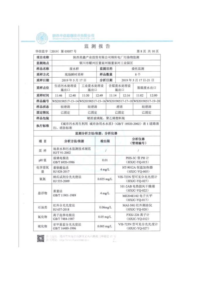 陜西美鑫產(chǎn)業(yè)投資有限公司錦陽電廠2×350MW機組2014年4月開工建設(shè),配套環(huán)保設(shè)施煙氣處理(脫硫及濕電系統(tǒng)、電除塵系統(tǒng)、脫硝系統(tǒng))和廢水處理等系統(tǒng)配套環(huán)保設(shè)施于2016年4月5日竣工。2016年4月8日至2016年7月24日,配套環(huán)保設(shè)施于#1、2機組進行調(diào)試。