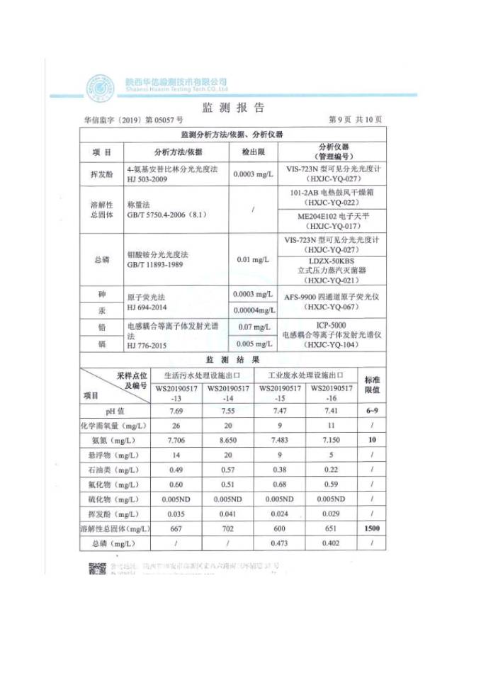 (1)監(jiān)測指標:pH值、化學需氧量、氨氮、懸浮物、總磷、石油類、氟化物、硫化物、揮發(fā)酚、溶解性總固體(全鹽量)。