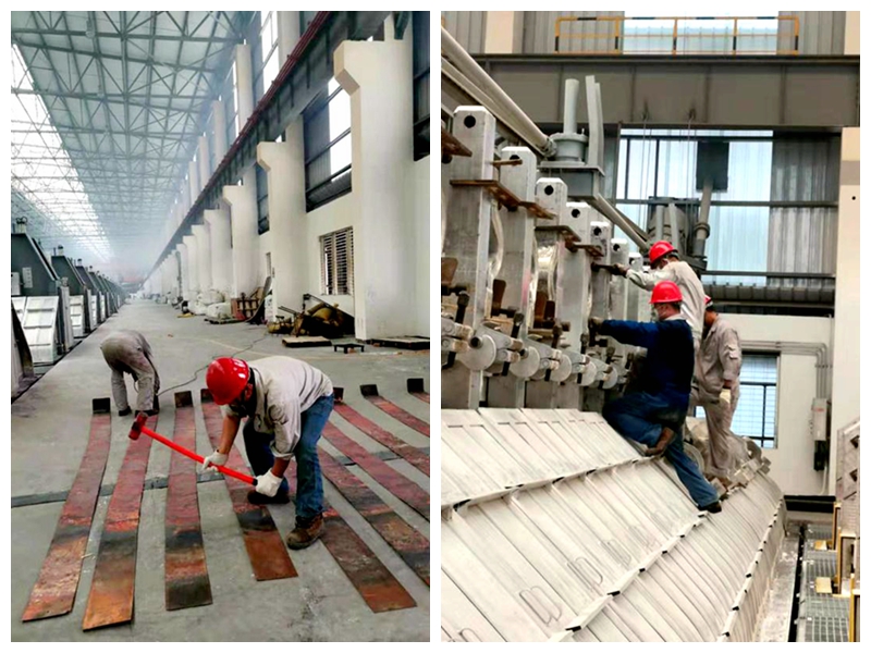 驕陽似火,熱浪如涌,持續(xù)高溫的日子肆虐著。在這樣的“桑拿天”里,鋁鎂合金檢修車間職工戰(zhàn)高溫、斗酷暑,從大局出發(fā),任勞任怨,用辛勤的汗水譜寫出一曲奉獻(xiàn)者之歌。 7月24日以來,為減輕電解生產(chǎn)壓力,齊心協(xié)力完成第二階段電解槽啟動投運(yùn)任務(wù),檢修車間在自身檢修任務(wù)繁重、人員緊張的情況下,主動請纓,動員發(fā)動內(nèi)部力量,主動承擔(dān)起電解車間分流器、軟連接的安裝任務(wù)。 7月24日當(dāng)天,檢修車間立刻行動起來。車間主任鄭云峰主持召開動員大會,號召車間全體職工凝聚力量,克服一切困難,以飽滿的工作熱情投入到電解槽啟動投運(yùn)攻堅戰(zhàn)中。當(dāng)天晚上,通過抽調(diào)加班方式,安裝人員按時上崗。 七月流火,熱浪滾滾,但檢修車間職工的工作熱情比氣溫還高。一個軟連接重達(dá)50多斤,一個人扛上肩,而后爬上幾米高的電解槽安裝,難度可想而知!問題不止于此,每個電解槽需要安裝48個軟連接,每安裝一個電解槽,這樣的動作就要重復(fù)48次。汗水不停地流下來,很快就濕透了工裝。為確保工作進(jìn)度、減輕工作強(qiáng)度,安裝采取分組方式,輪番上陣。職工們放棄雙休日,加班加點(diǎn)工作。輕度中暑時常發(fā)生,一支藿香正氣水下肚后又沖了上去。揮汗如雨的職工,用實際行動詮釋著美鑫職工愛崗敬業(yè)的錚錚誓言,用汗水共譜努力、團(tuán)結(jié)、共戰(zhàn)高溫的主旋律。