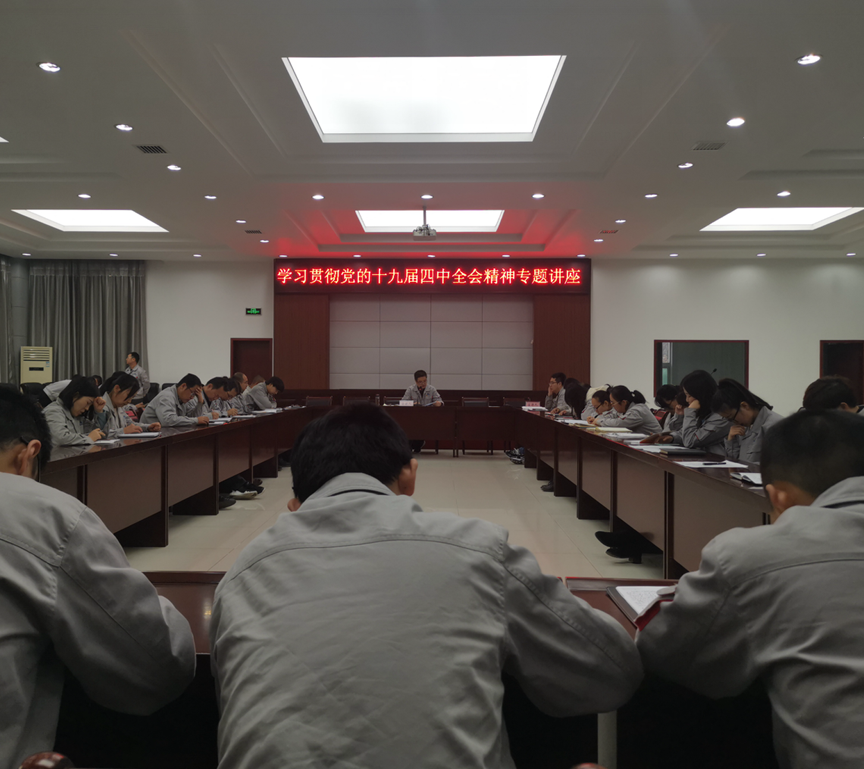 | 為深入學(xué)習(xí)貫徹黨的十九屆四中全會精神,引導(dǎo)干部職工深刻領(lǐng)會全會確定的主要任務(wù)、奮斗目標(biāo)和重大意義,切實把思想統(tǒng)一到全會的精神上來,凝聚推動公司發(fā)展的智慧力量,公司成立由班子成員組成的十九屆四中全會精神宣講團,赴各單位進行宣講。 11月26日下午,公司黨委書記、董事長高曉兵深入公司最大單位--鋁鎂合金分公司,向基層黨員干部群眾宣講。他在講話中指出,學(xué)習(xí)宣傳十九屆四中全會精神是當(dāng)前和今后一個時期的重要政治任務(wù),對基層黨組織來講,就是要在不折不扣執(zhí)行全會決定的前提下,充分領(lǐng)會全會精神實質(zhì),結(jié)合工作實際不斷探索完善工作機制,創(chuàng)新工作體制、工作理念,在基建轉(zhuǎn)生產(chǎn)、銅川鋁業(yè)公司和鋁鎂合金分公司管理體系相融合的過程中,大家同心協(xié)力,奮力進取,用全會精神指導(dǎo)我們工作實踐,不斷為公司高質(zhì)量高效益發(fā)展做出自己的貢獻。 11月27日下午,公司黨委委員、副總經(jīng)理、總工程師元勝利赴陽極分公司進行宣講。他指出,要把學(xué)習(xí)宣傳貫徹全會精神與公司各項重點工作結(jié)合起來,協(xié)調(diào)布置、統(tǒng)籌推進。堅持與完成全年目標(biāo)任務(wù)相結(jié)合,補短板、強弱項,確保全面完成全年目標(biāo)任務(wù),為明年開局打好基礎(chǔ)。 11月27日下午,公司黨委委員、總會計師韋化鵬為分管部門、聯(lián)系點單位集中宣講,強調(diào)了全會是我們黨站在“兩個一百年”奮斗目標(biāo)歷史交匯點上召開的一次十分重要的會議。全會作出堅持和完善中國特色社會主義制度、推進國家治理體系和治理能力現(xiàn)代化若干重大問題的決定,是黨中央從戰(zhàn)略和全局的高度作出的重大決策,對推動全黨全國各族人民堅定制度自信,發(fā)揮我國國家制度和國家治理體系顯著優(yōu)勢,實現(xiàn)“兩個一百年”奮斗目標(biāo)和中華民族偉大復(fù)興的中國夢具有重大而深遠的意義。 11月29日上午,集團公司全會精神宣講團成員、公司黨委副書記、紀(jì)委書記李書平為機關(guān)全體管理人員宣講,要求公司黨員領(lǐng)導(dǎo)干部要結(jié)合全會精神,在工作中做到:堅決擁護中央決定,領(lǐng)會黨完善國家治理能力和治理體系的決心和毅力,把斗爭進行到底。認(rèn)真貫徹全會精神,學(xué)習(xí)落實《中共中央關(guān)于堅持和完善中國特色社會主義制度、推進國家治理體系和治理能力現(xiàn)代化若干重大問題的決定》要求,確保公司能夠按照現(xiàn)代企業(yè)制度的要求,做強做優(yōu)。公司“強黨建、嚴(yán)紀(jì)律、促發(fā)展”專項整治成果要鞏固,“兩個責(zé)任”要落實,結(jié)合全會精神聚精會神做好黨建工作。 12月3日下午,公司副總經(jīng)理楊佰社赴電廠在支部組織生活會和民主評議黨員大會上宣講全會精神,他強調(diào)要真正把學(xué)習(xí)宣貫的成果體現(xiàn)為解決實際問題、促進公司發(fā)展的成效,以推動企業(yè)高質(zhì)量發(fā)展貫徹落實好全會精神。 12月4日上午,公司常務(wù)副總寧文衛(wèi)在礦業(yè)公司宣講,從“充分認(rèn)識堅持和完善中國特色社會主義制度、推進國家治理體系和治理能力現(xiàn)代化的重大意義”、“深刻領(lǐng)會中國特色社會主義制度和國家治理體系的顯著優(yōu)勢,堅定中國特色社會主義制度自信”、“準(zhǔn)確把握堅持和完善中國特色社會主義制度、推進國家治理體系和治理能力現(xiàn)代化的總體要求、總體目標(biāo)和重點任務(wù)”“加強黨的領(lǐng)導(dǎo),確保全會確定的各項目標(biāo)任務(wù)全面落實到位”等方面對全會精神進行系統(tǒng)闡述和深入解讀。 |
