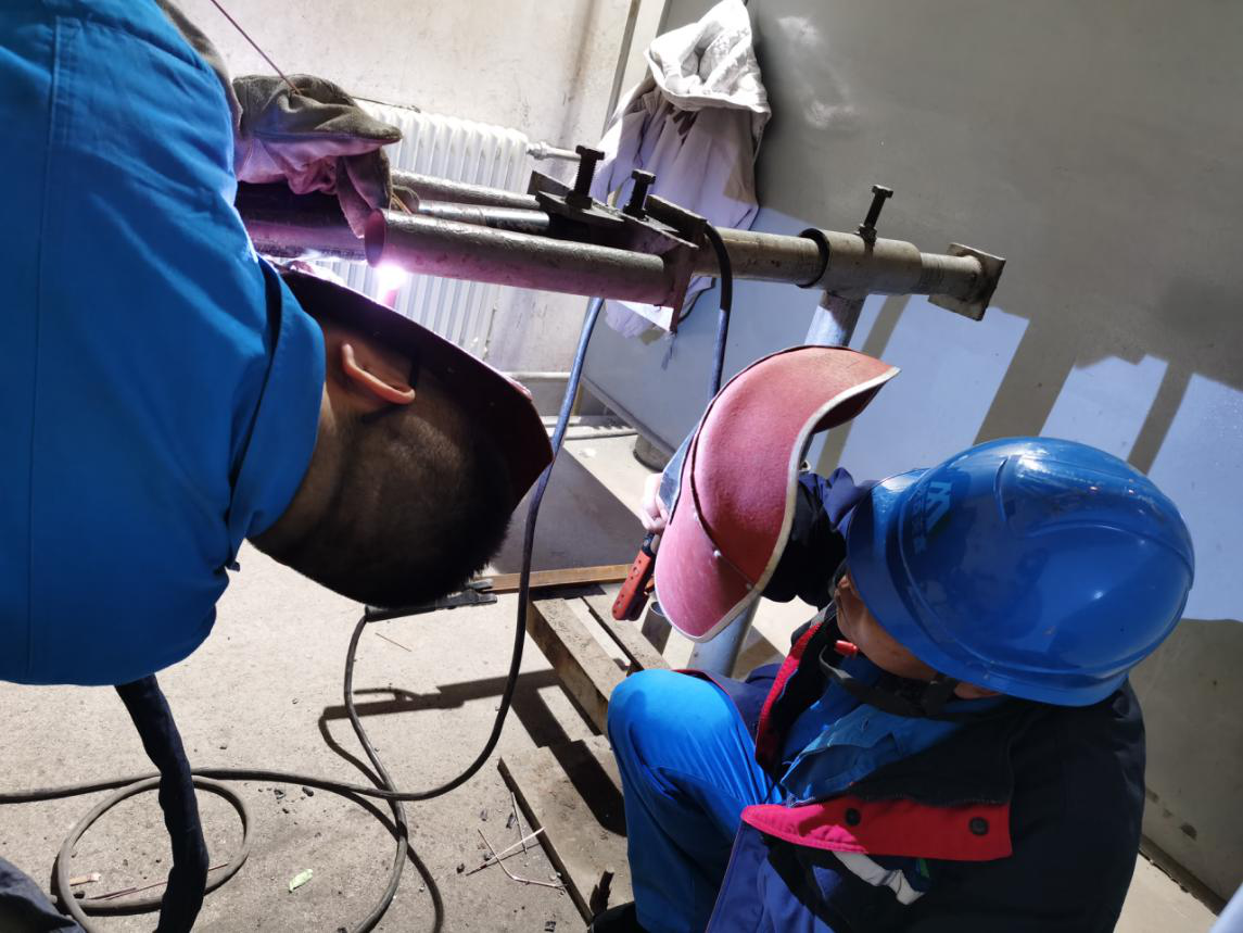 機務(wù)班組的實操內(nèi)容是制作鐵皮小圓桶,姚劍師傅作為機務(wù)班的一員,是一名高壓焊工,具有豐富的實戰(zhàn)經(jīng)驗,他負責(zé)對年輕的焊工進行實操培訓(xùn),從碳鋼氬弧焊開始。送絲、運焊把、焊接、收弧是氬弧焊的基本動作,操作時焊絲、焊槍和工件的角度只有在實踐中反復(fù)練習(xí)才能摸索領(lǐng)悟到。姚劍身體力行,一遍遍耐心的講解示范,一次次嫻熟穩(wěn)健的操作,在孤光和噪聲映襯下中尤為持重堅韌。
