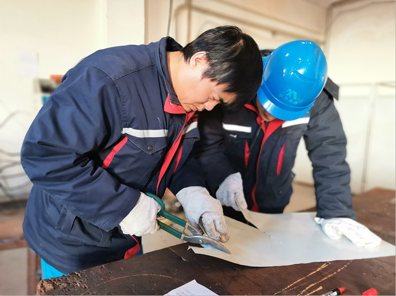 “紙上得來終覺淺,絕知此事要躬行”。大家從下料開始上手,劃線、裁剪、錘邊、咬合、鉸孔等每一道工序環(huán)環(huán)相扣,絲毫馬虎不得,尤其錘邊時力度要拿捏適當,否則事倍功半,天氣雖冷,但大家學(xué)習(xí)熱情高漲,長時間彎腰弓背,有些人干得滿頭大汗,脫去棉服輕裝上陣。所謂“萬能的鉗工”不是簡單的磨和銼,需要體力也需要耐心,反復(fù)測量驗證,否則就會報廢。大家通體合作,相互切磋,及時總結(jié)經(jīng)驗教訓(xùn),揚長避短,最終都按時完成了任務(wù),盡管有人的手掌都磨出了泡,但看到成品那一刻,都很欣慰。