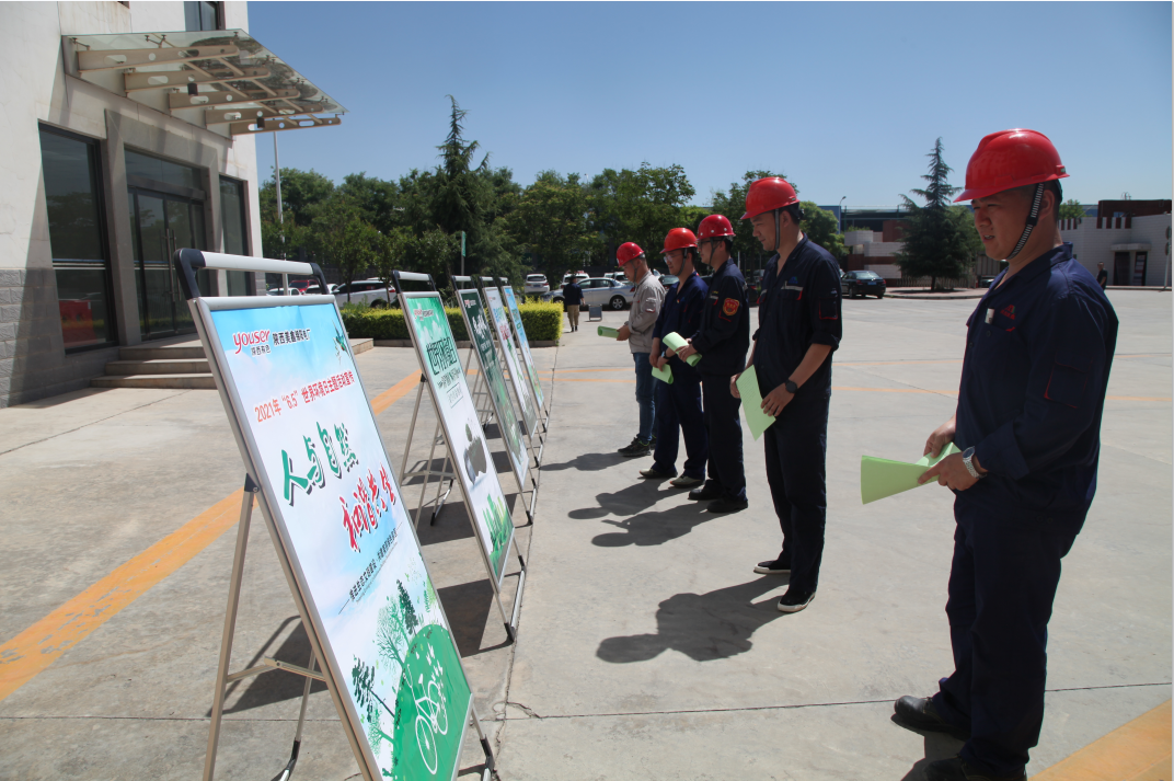 儀式結(jié)束后,與會(huì)全體職工在“人與自然和諧共生”宣傳橫幅上簽字并現(xiàn)場(chǎng)觀看了環(huán)保宣傳展板。