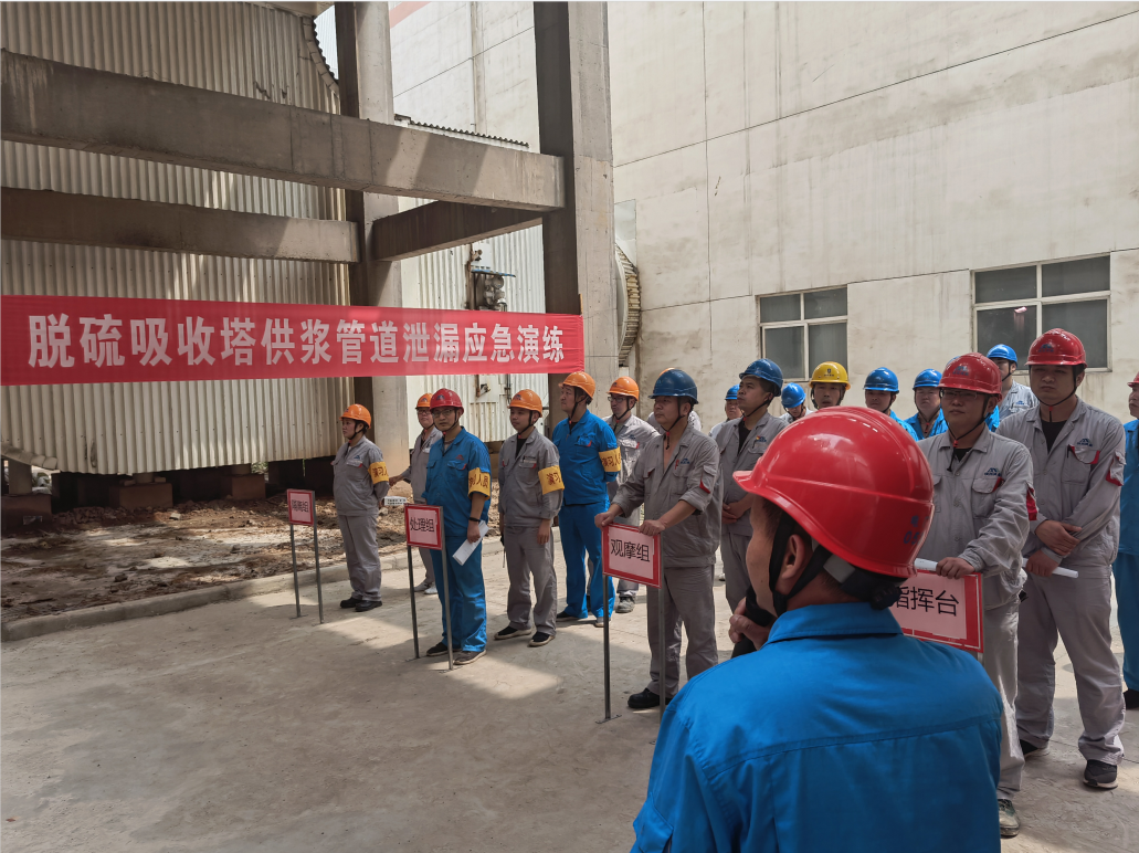 為切實提高脫硫部全體員工應(yīng)對脫硫系統(tǒng)供漿管道泄漏突發(fā)事件應(yīng)急處置能力,近日,錦陽電廠脫硫部開展#2機脫硫一、二級吸收塔石灰石漿液供漿管道漏漿應(yīng)急救援演練,檢修部進(jìn)行配合,各部門相關(guān)人員現(xiàn)場觀摩。 本次演練模擬脫硫系統(tǒng)正常運行,巡檢人員在巡檢過程中,發(fā)現(xiàn)#2脫硫一、二級吸收塔石灰石漿液供漿回流管道三通處破損,石灰石漿液外漏嚴(yán)重,對現(xiàn)場生產(chǎn)環(huán)境衛(wèi)生造成污染,致使脫硫吸收塔供漿困難,造成煙囪出口SO2排放指標(biāo)瞬時超標(biāo),直接影響#1、#2機組安全環(huán)保運行。 事故發(fā)生后,巡檢人員立即匯報當(dāng)班班長,班長確認(rèn)后根據(jù)機組負(fù)荷情況及時匯報值長并通知檢修處理漏點,運行人員在DCS上緊急調(diào)整吸收塔PH值,停運供漿泵,開啟相關(guān)排空閥,做好一切安全措施后,現(xiàn)場檢修進(jìn)行緊急處理。緊急搶修完畢后進(jìn)行注水試驗,檢查正常后恢復(fù)原運行方式,演練完畢。 通過本次演練,有效的檢驗了在應(yīng)急情況下,脫硫運行人員及檢修人員對處置方案的掌握和實際操作技能的熟練程度,提高了員工事故應(yīng)急處理能力,達(dá)到了演練預(yù)期效果,有力的保障了機組安全環(huán)保平穩(wěn)運行。 |