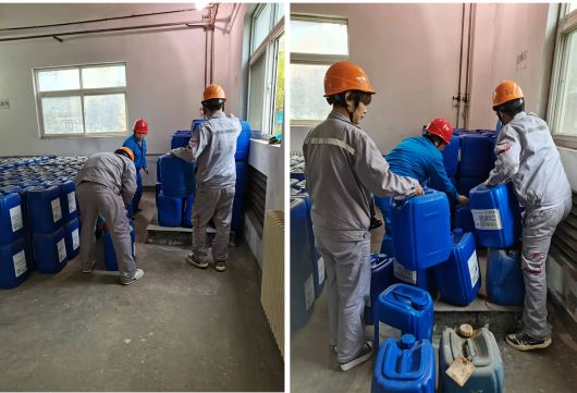 本次活動(dòng)著重對(duì)藥品儲(chǔ)存間的各種雜物、廢棄藥桶、加藥泵以及現(xiàn)場(chǎng)衛(wèi)生進(jìn)行整理整頓,大家分工協(xié)作、密切配合,沖洗臟舊藥桶,清理地面垃圾,規(guī)范藥品擺放,個(gè)個(gè)干的汗流浹背,熱火朝天。經(jīng)過一上午的辛勤勞動(dòng)后,藥品儲(chǔ)存間現(xiàn)場(chǎng)煥然一新。