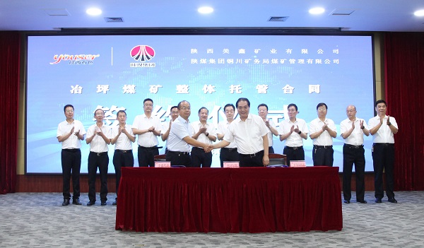 | 8月1日下午,陜西美鑫礦業(yè)有限公司、銅川礦務(wù)局煤礦管理有限公司整體托管冶坪煤礦合同簽約儀式順利舉行。銅川礦業(yè)公司黨委書(shū)記、董事長(zhǎng)劉水利,黨委副書(shū)記、總經(jīng)理路根奎,黨委副書(shū)記、董事、工會(huì)主席許江濤;公司黨委書(shū)記、董事長(zhǎng)高曉兵,黨委副書(shū)記、副總經(jīng)理侯小強(qiáng),黨委副書(shū)記李書(shū)平,副總經(jīng)理?xiàng)畎凵,監(jiān)事會(huì)主席李樹(shù)深等領(lǐng)導(dǎo)出席簽約儀式。 美鑫礦業(yè)公司總經(jīng)理席聯(lián)校,銅川礦業(yè)公司副總工程師、煤礦管理公司黨委書(shū)記、總經(jīng)理李福錦,代表雙方簽署冶坪煤礦整體托管合同。 簽約儀式上,劉水利代表銅川礦業(yè)公司向本次簽約表示熱烈的祝賀,對(duì)雙方三年多來(lái),坦誠(chéng)交流溝通、務(wù)實(shí)合作結(jié)下的深厚情誼表示肯定。希望雙方在良好合作的基礎(chǔ)上,凝聚共識(shí)、密切協(xié)作,取長(zhǎng)補(bǔ)短、合作共贏,以此次托管工作為橋梁,推動(dòng)雙方交流合作向更寬領(lǐng)域更深層次更高水平邁進(jìn)。