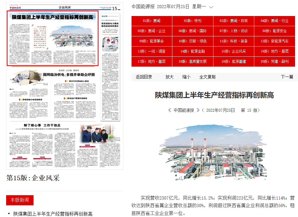本報(bào)訊 近日,陜煤集團(tuán)召開(kāi)2022年上半年經(jīng)濟(jì)運(yùn)行分析會(huì)。會(huì)議指出,今年上半年,陜煤集團(tuán)實(shí)現(xiàn)營(yíng)收2307億元,同比增長(zhǎng)15.2%;實(shí)現(xiàn)利潤(rùn)223億元,同比增長(zhǎng)114%,經(jīng)濟(jì)效益再創(chuàng)新高;營(yíng)收達(dá)到陜西省屬企業(yè)營(yíng)收總額的30%,利潤(rùn)超過(guò)省屬企業(yè)利潤(rùn)總額的56%,穩(wěn)居陜西省工業(yè)企業(yè)第一位。 據(jù)悉,今年上半年,陜煤集團(tuán)累計(jì)生產(chǎn)煤炭1.14億噸,生產(chǎn)主要化工產(chǎn)品1019萬(wàn)噸,生產(chǎn)粗鋼638萬(wàn)噸,發(fā)電215.5億度,生產(chǎn)水泥828萬(wàn)噸,同比分別增長(zhǎng)6.4%、4.8%、0.4%、3.8%、27.9%;完成投資100.3億元,同比增長(zhǎng)6.6%。 今年以來(lái),陜煤集團(tuán)加快推進(jìn)榆林化學(xué)180萬(wàn)噸乙二醇項(xiàng)目等54個(gè)重點(diǎn)項(xiàng)目建設(shè),狠抓煤、化、鋼、電等企業(yè)滿負(fù)荷生產(chǎn)。搶抓煤炭產(chǎn)能核增機(jī)遇,落地增量1560萬(wàn)噸。帶頭執(zhí)行保供任務(wù),簽訂完成煤炭中長(zhǎng)期合同1.54億噸。積極落實(shí)“公轉(zhuǎn)鐵”總體安排,三方鐵路運(yùn)力合同兌現(xiàn)率達(dá)到84.34%,超額完成國(guó)家監(jiān)管要求。 同時(shí),陜煤集團(tuán)不斷加強(qiáng)科技轉(zhuǎn)化,全面融入“秦創(chuàng)原”創(chuàng)新驅(qū)動(dòng)發(fā)展平臺(tái)建設(shè),以30億元基礎(chǔ)研究創(chuàng)新基金為契機(jī),聯(lián)合8所知名高校,新組建“秦嶺計(jì)劃”科技經(jīng)紀(jì)人團(tuán)隊(duì)28個(gè)。緊抓“孵化、擴(kuò)容、拓展”三大關(guān)鍵詞,在高端彈性體、特種多元醇、可降解材料等聚合物領(lǐng)域積極醞釀突破。 在智能化建設(shè)方面,陜煤集團(tuán)穩(wěn)步推進(jìn)數(shù)智轉(zhuǎn)型,持續(xù)深化數(shù)智生態(tài)建設(shè)。建成30處智能礦井,煤炭智能化開(kāi)采率達(dá)到97%。“智能礦井”“智慧礦區(qū)”等5個(gè)示范標(biāo)桿走在全國(guó)前列。數(shù)智轉(zhuǎn)型工作正在向化工、鋼鐵、電力和裝備制造等企業(yè)全方位滲透。在運(yùn)行管理端,決策中臺(tái)、數(shù)據(jù)中臺(tái)、物資集采、財(cái)務(wù)共享等智能化管理平臺(tái),一體化集成已現(xiàn)雛形。 在綠色發(fā)展方面,陜煤集團(tuán)大力發(fā)展風(fēng)力和光伏發(fā)電等新能源產(chǎn)業(yè),上半年累計(jì)并網(wǎng)規(guī)模達(dá)66萬(wàn)千瓦,正在實(shí)施推進(jìn)項(xiàng)目37萬(wàn)千瓦,開(kāi)展前期工作項(xiàng)目約76萬(wàn)千瓦。其中,青海、甘肅、新疆布局的新能源項(xiàng)目建設(shè)已進(jìn)入實(shí)質(zhì)階段。此外,集團(tuán)總體固廢綜合利用研究報(bào)告已基本形成,黃陵煤矸石制陶粒和粉煤灰綜合利用、韓城鋼鐵渣粉綜合利用和煤矸石高效綜合利用生產(chǎn)微晶玻璃等“先鋒隊(duì)項(xiàng)目”,已進(jìn)入開(kāi)工建設(shè)階段。 錨定國(guó)企改革三年行動(dòng)任務(wù)不放松,改革攻堅(jiān)達(dá)預(yù)期。陜煤集團(tuán)各級(jí)企業(yè)董事會(huì)應(yīng)建盡建、經(jīng)理層任期制和契約化管理、“三項(xiàng)制度”改革、技術(shù)研究院納入“科改示范行動(dòng)”試點(diǎn)、混合所有制改革持續(xù)深化等“規(guī)定項(xiàng)”全部落地。小企業(yè)改革等“自選項(xiàng)”深入推進(jìn),88戶企業(yè)“處僵治虧”工作全面完成。 |