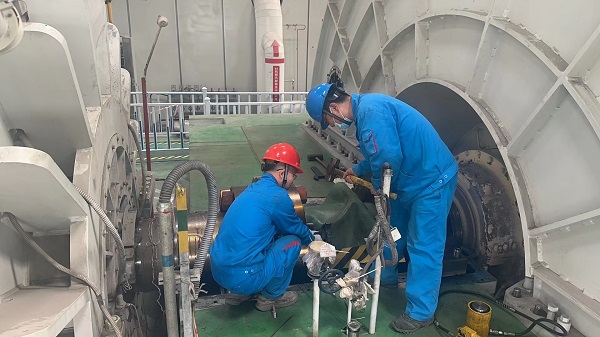 三月初,錦陽電廠#2號機組迎來首次A級檢修,汽輪機設(shè)備作為本次A級檢修的核心設(shè)備之一,如何做到高質(zhì)量、高效率完成本次設(shè)備檢修任務(wù),是決定機組安全平穩(wěn)經(jīng)濟(jì)運行的關(guān)鍵因素。 在作業(yè)點多、工程量大、時間緊的情況下,檢修汽機班搶抓時間、緊盯效率,對#2汽輪機低壓缸兩側(cè)對輪聯(lián)軸器進(jìn)行解體。解題過程中,首先對中低和低發(fā)聯(lián)軸器的同心度進(jìn)行測量,并將測量數(shù)據(jù)詳細(xì)記錄好,對聯(lián)軸器、螺栓、螺母、防松墊片進(jìn)行相對點位的編號和標(biāo)記。用專用聯(lián)軸器扳手按照記號逐一松掉聯(lián)軸器的螺母,用紫銅棒由汽輪機側(cè)向發(fā)電機側(cè)輕輕震動螺栓,直至螺栓全部抽出。之后,將每個螺栓、螺母和墊片按照前面做好的標(biāo)識標(biāo)記安裝在一起,放到安全的地方并遮蓋好,待所有螺栓都拆除完畢后,用千斤頂將發(fā)電機轉(zhuǎn)子向發(fā)電機側(cè)輕輕推動約10mm左右,在推動的過程中用百分表進(jìn)行監(jiān)視,直至聯(lián)軸器止口完全脫開,此項工作順利完成。 在此次A級檢修過程中,檢修汽機班始終抓質(zhì)量、抓進(jìn)度、對每一道工序嚴(yán)格要求,對每一向數(shù)據(jù)認(rèn)真測量、調(diào)整,做到了精益求精。今后工作中,該班組還將嚴(yán)格規(guī)范作業(yè),勤思考、多學(xué)習(xí),在實踐中增強自身技能水平,為機組穩(wěn)定、安全、經(jīng)濟(jì)運行提供有力的技術(shù)保障。 |