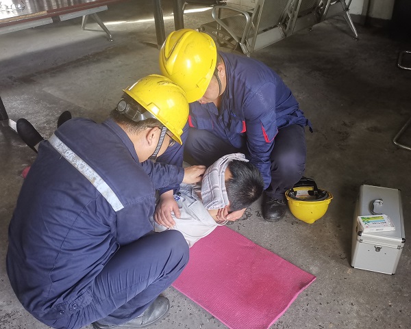 暑伏天已至,為進(jìn)一步提升職工應(yīng)對(duì)高溫中暑事件的應(yīng)急處置能力,預(yù)防中暑事件發(fā)生,7月21日上午,陽極分公司成型車間熱媒瀝青班組織開展高溫中暑應(yīng)急演練。 演練前夕,車間安全員現(xiàn)場(chǎng)組織講解中暑癥狀、中暑后臨時(shí)救治措施等相關(guān)急救知識(shí)。上午9:30分,演練正式開始。熱媒瀝青班組職工在瀝青泵房巡檢過程中,因受高溫天氣影響,突覺身體不適,出現(xiàn)頭暈、惡心、乏力等癥狀,立刻通過對(duì)講機(jī)匯報(bào)當(dāng)班班長(zhǎng),班長(zhǎng)在接到匯報(bào)后第一時(shí)間攜帶急救箱趕往現(xiàn)場(chǎng),經(jīng)初步判斷為輕度中暑,立即組織人員進(jìn)行緊急施救,并將現(xiàn)場(chǎng)情況進(jìn)行匯報(bào)。救援人員將中暑者攙扶至涼快通風(fēng)的休息區(qū)域并按劑量喂服霍香正氣水,同時(shí)采用濕毛巾、電風(fēng)扇等工具進(jìn)行物理降溫救治,數(shù)分鐘后中暑人員情況好轉(zhuǎn),頭暈惡心癥狀消失,至此演練結(jié)束,整個(gè)過程應(yīng)急措施到位、組織有序高效。 通過此次演練,有效增強(qiáng)了職工的安全防范意識(shí),提高了職工高溫中暑后的自救互救水平,提升了班組突發(fā)事故應(yīng)急處置能力,為車間夏季安全生產(chǎn)提供了有力保障。 |