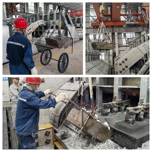 近日,一款簡(jiǎn)便實(shí)用具有可推運(yùn)可吊裝雙重功能的電解槽槽間進(jìn)料小推車在鋁鎂合金分公司電解一車間三工區(qū)投入使用,有效提高了初封極作業(yè)效率。 據(jù)了解,電解車間槽與槽之間間距狹窄,此前使用的小推車受寬度和材質(zhì)限制,在封極上料過(guò)程中無(wú)法直接推入作業(yè)區(qū)域,只能人工用鐵锨端料進(jìn)入槽間上料。針對(duì)此問(wèn)題電解一車間技術(shù)革新小組在多方征求職工意見(jiàn)的基礎(chǔ)上,經(jīng)過(guò)反復(fù)試驗(yàn),最終成功制作出一款以不銹鋼鋼板為制作原材料的“防磁場(chǎng)多功能槽間進(jìn)料小推車”并投入使用。該小推車在充分考量初封極所需料量和電解槽磁場(chǎng)影響的基礎(chǔ)上,合理設(shè)置尺寸,保留基礎(chǔ)功能并在箱體側(cè)部加焊了4個(gè)吊環(huán)方便天車吊運(yùn)。作業(yè)時(shí),只需將小推車裝滿封極料后推至需要初封陽(yáng)極電解槽出鋁端口,然后用專用的防磁吊鉤將小推車吊運(yùn)至初封極工作面,摘掉其中兩個(gè)掛鉤后將小推車中料塊精準(zhǔn)翻置到陽(yáng)極表面并用鐵锨簡(jiǎn)單平整就可完成初封極工作。 今后,電解一車間技術(shù)革新小組將在創(chuàng)新革新道路上持續(xù)發(fā)力,以創(chuàng)新思維為實(shí)現(xiàn)安全工作、高效作業(yè)目標(biāo)提供堅(jiān)強(qiáng)保障。 |