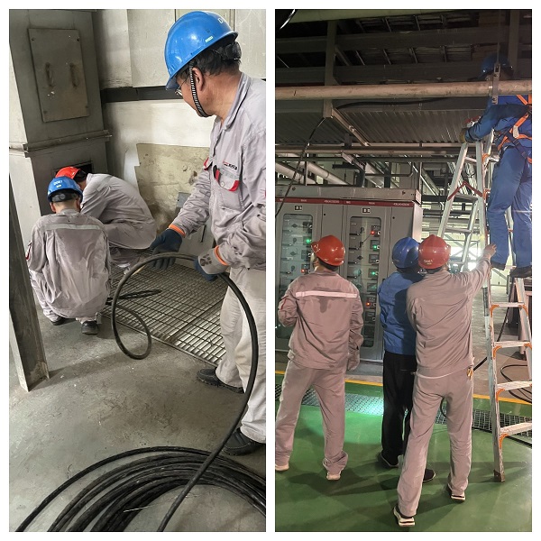 為進(jìn)一步增強(qiáng)黨員干部的凝聚力、戰(zhàn)斗力,更好地保障電廠設(shè)備安全平穩(wěn)運(yùn)行,8月21日,錦陽(yáng)電廠檢修黨支部開展“鋪設(shè)設(shè)備電纜 助推安全生產(chǎn)”主題黨日活動(dòng)。 錦陽(yáng)電廠#4機(jī)汽機(jī)主廠房屋頂散熱風(fēng)機(jī)原設(shè)計(jì)進(jìn)線電纜四乘四平方,夏季工況下,不能滿足六臺(tái)屋頂散熱風(fēng)機(jī)同時(shí)持續(xù)運(yùn)行,廠房?jī)?nèi)熱量無法及時(shí)排出,存在環(huán)境溫度高導(dǎo)致重要設(shè)備跳閘的風(fēng)險(xiǎn),給機(jī)組安全運(yùn)行帶來不確定因素。針對(duì)此項(xiàng)問題,檢修黨支部迎難而上,安排人員現(xiàn)場(chǎng)核對(duì)各散熱風(fēng)機(jī)的額定功率、額定電流并進(jìn)行定制計(jì)算,經(jīng)分析,判定原因?yàn)榫徑偏小不滿足風(fēng)機(jī)同時(shí)運(yùn)行需要。最終確定解決方案:更換原四乘四平方電纜為四乘十平方,保證原MCC通風(fēng)柜電源開關(guān)容量不變,重新設(shè)定保護(hù)定值。隨后黨員干部帶頭、職工積極參與,進(jìn)行完作業(yè)前技術(shù)和安全兩交底后,大家?guī)е俳镏械碾娎|及人字梯、鐵絲、扎帶等工器具迅速投入電纜鋪設(shè)工作中。本次作業(yè)分成三個(gè)小組,第一組從12.6米上方的除氧器平臺(tái)放下電纜,第二組在電纜橋架理順電纜并用扎帶固定電纜,第三組在下一層平臺(tái)拉電纜。在大家齊心協(xié)力下,歷時(shí)三個(gè)多小時(shí),近百米的黑皮電纜被規(guī)整的放在豎井和橋架內(nèi)直達(dá)MCC通風(fēng)柜,經(jīng)電氣專業(yè)人員對(duì)電纜頭壓制線鼻固定后接線、設(shè)定新的保護(hù)定值,風(fēng)機(jī)試轉(zhuǎn)正常,此項(xiàng)作業(yè)圓滿完成。 本次活動(dòng),在進(jìn)一步增強(qiáng)了廣大黨員干部的責(zé)任感和服務(wù)意識(shí)的同時(shí),為電廠設(shè)備長(zhǎng)周期穩(wěn)定高效運(yùn)行提供了保障。 |