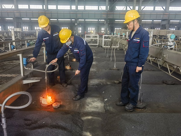 為有效落實好四季度“穩(wěn)增長”工作安排,10月26日上午,陽極分公司焙燒車間1#焙燒爐2#燃控系統(tǒng)點火啟動,分公司領導及相關人員現(xiàn)場指導。 為確保點火順利啟動,分公司相關部門、車間召開專題會議討論審定啟動方案及應急預案,安排專人反復檢查爐室及設備狀況,確保點火啟動萬無一失。上午11點,作業(yè)人員按照方案及責任分工,由#1火道至#9火道依次點燃,并手動控制調(diào)整火焰,點火啟動一次性成功。在烘爐期間,車間安排崗位人員24小時現(xiàn)場值守,及時關注火焰情況,確保燃燒架溫度按照既定升溫速率穩(wěn)步提升。 此次火焰系統(tǒng)點火啟動工作,有效檢驗了焙燒烘爐啟動方案的可操作性,進一步保證了預焙陽極生產(chǎn)需求以及四季度預焙陽極代加工任務的順利完成。 |