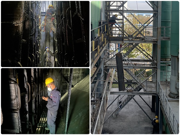 隨著生產(chǎn)工作持續(xù)進行,10月中下旬,陽極分公司焙燒車間2#煙氣凈化系統(tǒng)電捕焦油器陽極板已達到使用更換周期,為防止發(fā)生極板脫落、電暈閉塞等設備隱患,經(jīng)分公司同意,車間決定對2#系統(tǒng)電捕焦油器陽極板進行集中更換。 由于本次極板更換時間緊、任務重,分公司決定由焙燒車間和外包單位共同完成此項工作。車間結(jié)合生產(chǎn)實際,制定詳實的工作方案和應急預案,協(xié)助辦理受限空間工作票,定時定點做好通風檢測等安全保障措施,安排專人認真進行現(xiàn)場監(jiān)護管理和檢查清理,確保極板更換作業(yè)安全高效完成。在此次更換作業(yè)中,焙燒車間總結(jié)以往工作經(jīng)驗,與外包單位協(xié)同配合,采用定、動滑輪組調(diào)運安裝陽極板,大幅提高了安全性能,減輕勞動強度,有效提升了工作效率。經(jīng)過二十余天緊張忙碌工作,近期,2#系統(tǒng)電捕焦油器陽極板全部更換完成,經(jīng)調(diào)試運行一切狀況良好。 此次極板更換工作,徹底消除了因極板腐蝕損壞、捕集吸附能力減弱所引起的系統(tǒng)電流降低、電暈閉塞、極板脫落等潛在安全隱患,保證了車間環(huán)保排放指標正常平穩(wěn),也為車間后期自主更換陽極板作業(yè)積累了寶貴經(jīng)驗。 |