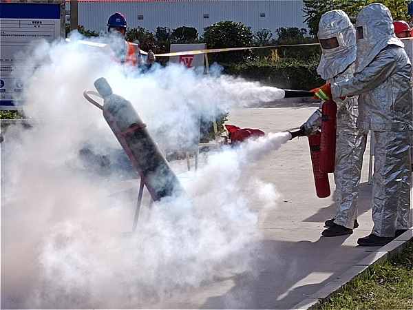 為深刻吸取山西呂梁永聚煤礦火災(zāi)事故,進(jìn)一步提升電廠上下應(yīng)急聯(lián)動(dòng)能力,11月28日下午,錦陽電廠在儲(chǔ)氫站外開展儲(chǔ)氫站氫瓶泄漏著火事故應(yīng)急演練。電廠管理人員,各部門、項(xiàng)目部安全員和部分職工在現(xiàn)場進(jìn)行觀摩。 儲(chǔ)氫站屬于電廠重點(diǎn)防火管轄區(qū)域,氫瓶泄漏著火易引發(fā)氫氣爆炸事故。演練模擬巡檢人員在儲(chǔ)氫站巡檢時(shí)檢測氫氣超標(biāo),迅速跑到儲(chǔ)氫站外匯報(bào)值長并果斷采取通風(fēng)措施。值長立即聯(lián)系檢修部汽機(jī)班進(jìn)行緊急處理,同時(shí)匯報(bào)安環(huán)部及電廠領(lǐng)導(dǎo)。汽機(jī)班長帶人迅速趕到儲(chǔ)氫站查看,發(fā)現(xiàn)有一氫瓶泄漏,隨即聯(lián)系運(yùn)行人員對(duì)儲(chǔ)氫站泄漏點(diǎn)做安全隔離措施;警戒組立即在周邊拉起警戒線,禁止無關(guān)人員進(jìn)入現(xiàn)場,避免造成二次傷害;參與搶險(xiǎn)人員做好個(gè)人防護(hù),快速用推車將泄漏瓶移到儲(chǔ)氫站外,用滅火器對(duì)著火點(diǎn)進(jìn)行滅火,并對(duì)泄漏氫瓶正確規(guī)范泄壓;馂(zāi)撲滅后,經(jīng)運(yùn)行人員對(duì)儲(chǔ)氫站內(nèi)氫氣監(jiān)測結(jié)果顯示正常后,演練圓滿結(jié)束。 演練結(jié)束后,電廠副經(jīng)理郭軍營進(jìn)行點(diǎn)評(píng),肯定了本次演練效果并提出要求,要以此次演練活動(dòng)為契機(jī),進(jìn)一步加強(qiáng)安全管理,全面提升員工應(yīng)急處置能力,確保電廠經(jīng)濟(jì)安全平穩(wěn)運(yùn)行。 |
