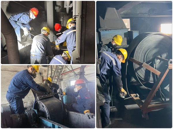 | 陽極分公司成型車間返回料#1斗式提升機從階段性試運行到持續(xù)生產(chǎn)已有9年之久,連接部位積料和銹蝕問題逐漸顯現(xiàn),主動輥滾筒及皮帶磨損程度也已達到更換標準。近期,結合工作實際和設備檢修計劃,車間決定對#1斗式提升機進行全面維修。 此次返回料斗式提升機維修強度高、難度大,分公司相關職能部門及車間高度重視,成立檢維修工作小組,商討制定維修方案和應急預案,隨著備品備件的逐步到廠,維修工作如期展開。維修過程中,檢修班組和生產(chǎn)班組協(xié)同配合,從拆卸固定螺栓、清理積累物料到對拆下部件進行標記分類擺放、備品備件有序更換安裝,維修人員精心操作、規(guī)范作業(yè),確保每道工序有條不紊、高效完成。特別是在手動盤車更換80米皮帶過程中,檢修人員結合現(xiàn)場實際自主設計制作適用工具,有效推進了更換進度。經(jīng)過為期5天的不懈努力,于4月12日按計劃完成維修更換工作,設備運行調(diào)試正常后將投入生產(chǎn)。 此次檢修工作,不僅徹底消缺了該設備存在的問題,也有效保證了后期車間生產(chǎn)工作的持續(xù)穩(wěn)定。今后工作中,成型車間將持續(xù)做好設備隱患排查治理,確保設備安全高效穩(wěn)定運行。 |