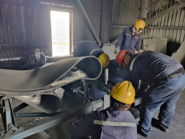 陽極分公司煅燒車間在設(shè)備點檢過程中發(fā)現(xiàn)煅后倉3221膠帶輸送機膠帶出現(xiàn)不同程度起皮開裂現(xiàn)象。為了徹底消除此隱患,保證下游工序生產(chǎn)物料穩(wěn)定供應(yīng),車間決定對該膠帶輸送機膠帶進行更換。 為保證更換工作順利開展,車間結(jié)合現(xiàn)場實際制定了詳細的作業(yè)方案,吊運所需備件及維修物資,并與相關(guān)車間做好溝通協(xié)調(diào),避免影響下游生產(chǎn)。在做好充分準備后,車間挑選檢修精干力量投入更換工作。在更換過程中,機架的拆裝是膠帶輸送機的最基礎(chǔ)工作,作業(yè)人員耐心細致地逐個將零件做好標記并注明安裝位置,保證設(shè)備能夠精準安裝到位。制作膠帶輸送機接頭更是保證膠帶使用壽命的關(guān)鍵環(huán)節(jié),檢修人員采用硫化粘接法,按照工藝要求將膠帶接頭部位的帆布層和膠層做成對稱等差階梯,將硫化溫度控制在145℃,在保障硫化最佳強度下進行粘接作業(yè)。在大家的齊心協(xié)力下,歷時8小時順利完成煅后倉膠帶輸送機膠帶更換工作,經(jīng)負載調(diào)試運行正常后投入使用。 此次膠帶輸送機膠帶更換工作,消除了設(shè)備安全隱患,提高了設(shè)備使用性能,也為車間后期類似工作積累了寶貴經(jīng)驗。下一步,車間將加大設(shè)備點巡檢力度,及時發(fā)現(xiàn)消除設(shè)備隱患,提前做好預(yù)防性維護保養(yǎng)工作,進一步保證設(shè)備高效平穩(wěn)運行。 |