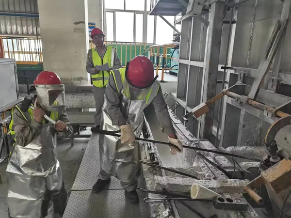 為進(jìn)一步提高職工對(duì)突發(fā)事件的應(yīng)變和處理能力,掌握混合爐漏爐現(xiàn)場(chǎng)處置方法,6月13日,鋁鎂合金分公司鑄造車(chē)間組織開(kāi)展混合爐突發(fā)事故應(yīng)急演練。 事故模擬了3號(hào)混合爐的3號(hào)爐眼因內(nèi)襯破裂、鋁液流量突然增大從而導(dǎo)致外溢的緊急情況。在事故應(yīng)急演練前,鑄造車(chē)間主任范耀民向職工詳細(xì)講解了發(fā)現(xiàn)混合爐漏爐時(shí)的應(yīng)急處置流程。演練實(shí)操環(huán)節(jié)中,爐眼工迅速反應(yīng),采取堵?tīng)t措施試圖控制鋁液外溢并立即向車(chē)間負(fù)責(zé)人匯報(bào),在車(chē)間負(fù)責(zé)人指揮下,速度切斷相關(guān)電源、停止供水,組織人員有序撤離,做好隔離措施,確保人員安全。當(dāng)班班長(zhǎng)組織人員緊急處置,利用石棉繩、纖維氈等材料封堵?tīng)t眼,調(diào)整溜槽擋板引導(dǎo)鋁液流向3號(hào)鑄機(jī),經(jīng)過(guò)緊急處置,爐眼最終被封堵,鋁液外溢得到控制。演練結(jié)束后,車(chē)間管理人員對(duì)演練過(guò)程進(jìn)行了總結(jié)評(píng)估,針對(duì)發(fā)現(xiàn)的問(wèn)題和不足提出了改進(jìn)措施。整個(gè)演練過(guò)程流暢精準(zhǔn),展現(xiàn)出車(chē)間職工出色的應(yīng)急處置能力和團(tuán)隊(duì)協(xié)作精神。 此次演練不僅檢驗(yàn)了車(chē)間安全生產(chǎn)各項(xiàng)職責(zé)和應(yīng)急救援體系的實(shí)際效果,也為應(yīng)急預(yù)案的進(jìn)一步完善提供了較多可操作性依據(jù)。接下來(lái),鑄造車(chē)間將繼續(xù)加強(qiáng)安全教育,不斷提高職工的安全意識(shí)和技能水平,為車(chē)間的安全生產(chǎn)工作提供有力保障。 |
