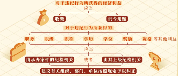 《中國共產(chǎn)黨紀(jì)律處分條例》對(duì)于違紀(jì)行為所獲利益如何處理作出了規(guī)定。主要分為兩種情況—— 對(duì)于違紀(jì)行為所獲得的經(jīng)濟(jì)利益,應(yīng)當(dāng)收繳或者責(zé)令退賠。對(duì)于主動(dòng)上交的違紀(jì)所得和經(jīng)濟(jì)損失賠償,應(yīng)當(dāng)予以接收,并按照規(guī)定收繳或者返還有關(guān)單位、個(gè)人。 依照《中國共產(chǎn)黨紀(jì)律處分條例》《中華人民共和國公職人員政務(wù)處分法》及相關(guān)指導(dǎo)性案例,在追究黨紀(jì)責(zé)任時(shí),處置涉案財(cái)物的主要方式為“收繳”和“責(zé)令退賠”;在追究監(jiān)察責(zé)任時(shí),處置涉案財(cái)物的主要方式為“沒收”“追繳”和“責(zé)令退賠”。其中,追究黨紀(jì)責(zé)任時(shí)對(duì)違紀(jì)所得予以“收繳”,相當(dāng)于追究監(jiān)察責(zé)任時(shí)對(duì)違法所得予以“沒收”和“追繳”。 “收繳”通常針對(duì)的是實(shí)施違紀(jì)違法行為所獲得的財(cái)物及其孳息收益,“責(zé)令退賠”通常針對(duì)的是違反規(guī)定揮霍浪費(fèi)國有資產(chǎn),如公款吃喝、公款旅游以及違反規(guī)定亂罰款、亂收費(fèi)獲得的財(cái)物等,責(zé)令被審查調(diào)查人將違紀(jì)違法所得的財(cái)物予以歸還,財(cái)物已經(jīng)被消耗、毀損的,應(yīng)當(dāng)用與之價(jià)值相當(dāng)?shù)呢?cái)物予以賠償,責(zé)令退賠的財(cái)物直接退賠原所有人或原持有人,無法退賠的上繳國庫。 對(duì)于違紀(jì)行為所獲得的職務(wù)、職級(jí)、職稱、學(xué)歷、學(xué)位、獎(jiǎng)勵(lì)、資格等其他利益,應(yīng)當(dāng)由承辦案件的紀(jì)檢機(jī)關(guān)或者由其上級(jí)紀(jì)檢機(jī)關(guān)建議有關(guān)組織、部門、單位按照規(guī)定予以糾正。 這里的“有關(guān)組織、部門、單位”,主要是指對(duì)違紀(jì)行為所獲得的職務(wù)、職級(jí)、職稱、學(xué)歷、學(xué)位、獎(jiǎng)勵(lì)、資格等其他利益有權(quán)予以糾正的組織、部門、單位。 同時(shí),結(jié)合《條例》第三十七條、第三十八條規(guī)定,對(duì)違紀(jì)后下落不明的黨員,黨組織作出處分決定前死亡的黨員,或者死亡之后發(fā)現(xiàn)曾有嚴(yán)重違紀(jì)行為的黨員,經(jīng)調(diào)查確屬其實(shí)施違紀(jì)行為獲得的利益,也應(yīng)當(dāng)依照上述規(guī)定處理。 |