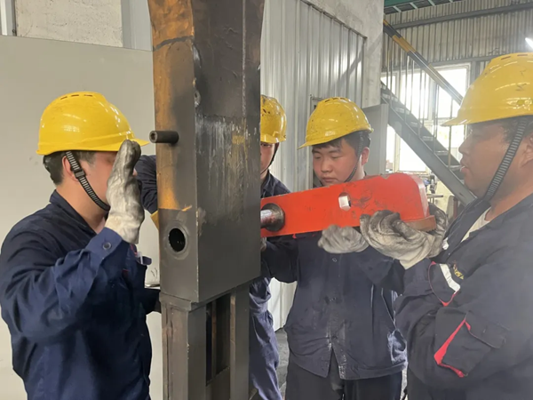 為確保陽極自產(chǎn)塊及代焙塊的生產(chǎn)任務(wù)順利完成,近期,陽極分公司焙燒車間對1#多功能天車夾具夾釘進行了更換,以便增大夾具與炭塊間的摩擦阻力,保障設(shè)備生產(chǎn)安全。 車間合理安排調(diào)配,討論制定了詳細的方案,利用生產(chǎn)間隙集中力量進行更換。由車間領(lǐng)導(dǎo)現(xiàn)場統(tǒng)籌安排,設(shè)備專責(zé)協(xié)調(diào)備件、全程跟進,安全員現(xiàn)場安全檢查、責(zé)任監(jiān)護,維修班具體負責(zé)拆卸、安裝。由于夾具夾釘屬于配合件,作業(yè)人員既要保證銷釘與銷孔的配合度,還要確保表面光潔度不被損壞。更換過程中,檢修人員精細作業(yè),合力對重達百斤的夾釘進行拆卸、搬運、安裝、焊接、固定,在大家的通力配合下,順利完成了1#多功能天車4個夾具夾釘?shù)母鼡Q工作,經(jīng)調(diào)試運行正常,目前已正式投入生產(chǎn)。 此次夾具夾釘更換,消除了設(shè)備安全隱患,避免了炭塊裝夾過程中滑脫風(fēng)險,有效滿足了自產(chǎn)陽極塊及代焙塊裝出爐作業(yè)需求,為分公司順利完成年度降本增效任務(wù)提供了有力支撐。 |