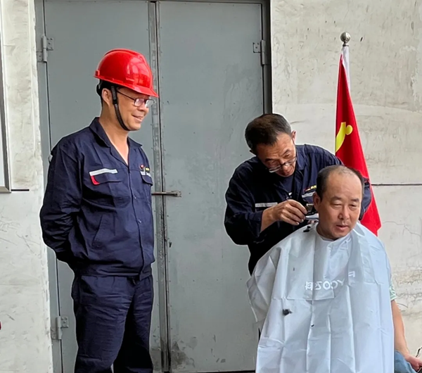 陽極分公司煅燒車間黨支部以“紅七月·服務(wù)月”為主題,組織開展義務(wù)理發(fā)活動,為辛勤工作的一線職工送上一份清涼與關(guān)懷。 在黨支部的組織號召下,有理發(fā)特長的黨員焦寶宏主動請纓擔(dān)任“理發(fā)師”;顒赢(dāng)天,一把椅子、一塊圍布、一套理發(fā)工具,一個便捷式理發(fā)店便開張了;顒蝇F(xiàn)場秩序井然,等待理發(fā)的工友們排著隊等待,“理發(fā)師”按照大家的需求和喜好依次進行理發(fā),在一梳一推間一個個清爽利落的發(fā)型就出來了。參與理發(fā)的職工對本次活動贊不絕口,更是對焦師傅的手藝豎起大拇指。 今后工作中,煅燒車間黨支部將繼續(xù)以職工需求為導(dǎo)向,開展更多有意義、有溫度的活動,讓關(guān)愛與溫暖在黨員與職工間持續(xù)傳遞。 |