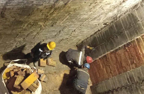 七月中旬,陽極分公司焙燒車間在對焙燒爐日常維護(hù)中發(fā)現(xiàn),2#焙燒爐45#爐室5火道爐墻變形較為嚴(yán)重,經(jīng)現(xiàn)場勘查、測量,確定該爐室火道墻已不滿足生產(chǎn)條件,為避免出現(xiàn)生產(chǎn)質(zhì)量波動和事故隱患,車間決定立即對該火道墻進(jìn)行拆除重建。 為減少火道墻拆除重建工作對生產(chǎn)任務(wù)的影響,車間在保證安全的前提下合理優(yōu)化生產(chǎn)任務(wù),并安排安全專責(zé)負(fù)責(zé)作業(yè)全過程監(jiān)督管理,綜合班班長負(fù)責(zé)有限空間作業(yè)票辦理、現(xiàn)場監(jiān)護(hù),綜合班具體負(fù)責(zé)實(shí)施,生產(chǎn)運(yùn)行班協(xié)助配合。作業(yè)前嚴(yán)格按照有限空間作業(yè)“先通風(fēng)、再檢測、后作業(yè)”的流程進(jìn)行,負(fù)責(zé)人現(xiàn)場協(xié)調(diào)指揮,作業(yè)人員克服40多度悶熱環(huán)境,服從管理、規(guī)范作業(yè),經(jīng)過為期5天的加班加點(diǎn)工作,終于按計劃如期完成焙燒爐火道墻拆除重建工作。目前,該爐室已投入生產(chǎn),經(jīng)過檢驗(yàn)觀察,整體運(yùn)行狀態(tài)良好。 本次焙燒爐火道墻拆除重建工作順利完成,檢驗(yàn)了火道墻拆除重建工作方案的實(shí)操性和可行性,為車間多工種配合交叉安全作業(yè)積累了寶貴經(jīng)驗(yàn),有效保證了生產(chǎn)任務(wù)平穩(wěn)有序完成。 |