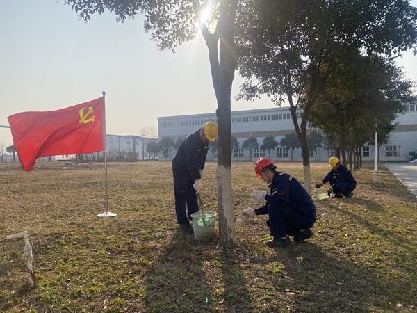 冬日來(lái)臨,天氣漸冷,為做好車間周邊樹木防護(hù)工作,避免凍傷和病蟲侵害,12與19日,陽(yáng)極分公司焙燒車間黨支部組織黨員職工開展“樹木防護(hù)著‘新裝’,抗寒防蟲保生長(zhǎng)”主題黨日活動(dòng)。 為保證樹木防護(hù)工作有效、到位,黨支部提前查閱書籍資料,學(xué)習(xí)防凍技巧和方法,為活動(dòng)開展備足功課。19日中午,黨支部利用工余時(shí)間組織黨員職工開展了此次活動(dòng),活動(dòng)中,大家分工明確,相互配合,有的調(diào)配涂料、有的負(fù)責(zé)搬運(yùn)、有的認(rèn)真細(xì)致涂抹,在粉刷涂料時(shí),黨員職工還相互討論交流心得,分享經(jīng)驗(yàn)做法,不但提高了工作效率,還增長(zhǎng)了林木防護(hù)知識(shí)。經(jīng)過(guò)大家的辛勤勞作,廠房周邊40余棵樹木換上了白色的“新裝”,整齊劃一。 通過(guò)此次主題黨日活動(dòng),保護(hù)了廠區(qū)綠化,美化了工作環(huán)境,同時(shí)也增強(qiáng)了黨組織凝聚力,激發(fā)了黨員職工的工作熱情。接下來(lái),車間黨支部將繼續(xù)發(fā)揮黨建引領(lǐng)服務(wù)職能,帶領(lǐng)黨員職工攻堅(jiān)克難、努力工作,為公司高質(zhì)量發(fā)展做出更大貢獻(xiàn)。 |
