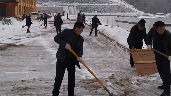 紛紛揚(yáng)揚(yáng)的小雪突如其來(lái),美鑫礦業(yè)公司冶坪煤礦十里礦區(qū),銀裝素裹,分外妖嬈。為保障人員出行安全,公司組織人員鏟除路面積雪。