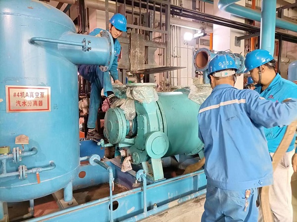 錦陽電廠#2機(jī)組A級檢修正在緊張進(jìn)行中,巡檢發(fā)現(xiàn)#4機(jī)A真空泵運(yùn)行異常,檢修部高度重視、緊急抽調(diào)汽機(jī)檢修班部分人員投入到設(shè)備的搶修中。真空泵是電廠重要輔機(jī)之一,其作用是抽出凝汽器中的未凝結(jié)氣體,使汽輪機(jī)正常運(yùn)行中維持足夠真空度,形成負(fù)壓保證汽輪機(jī)正常進(jìn)汽做功。真空泵故障將會影響系統(tǒng)真空度、機(jī)組出力,嚴(yán)重時會造成機(jī)組停機(jī)。 本次設(shè)備搶修作業(yè)涉及到高空、吊裝等特種作業(yè),時間緊、任務(wù)重,汽機(jī)班全力以赴,分秒必爭。真空泵解體后,發(fā)現(xiàn)驅(qū)動端軸承磨損嚴(yán)重,軸承與軸抱死,初步判定上述現(xiàn)象是造成本次設(shè)備故障的直接原因。檢修人員各司其職、按照分工:一組取下磨損軸承,測量大軸原始數(shù)據(jù),打磨修復(fù)磨損區(qū)域,分析造成本次設(shè)備故障原因;二組打磨、清洗拆卸下來其余設(shè)備零部件,確認(rèn)需回裝備件;三組準(zhǔn)備倒鏈、撬杠、拉馬等專用工具開始回裝,各環(huán)節(jié)嚴(yán)格按照檢修工藝有序開展。經(jīng)過十多個小時的持續(xù)搶修,在保證上下張口及左右偏差5s以內(nèi)后,設(shè)備進(jìn)行試轉(zhuǎn),振動、聲音、溫度、電流等各項(xiàng)參數(shù)均優(yōu)良,搶修工作取得圓滿成功。 此次搶修,及時消除了真空泵存在的安全隱患,提高了設(shè)備安全運(yùn)行周期,為機(jī)組安全穩(wěn)定運(yùn)行打下了堅(jiān)實(shí)的基礎(chǔ)。 |