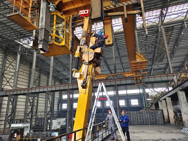 陽極分公司焙燒多功能天車是焙燒爐裝出陽極塊的主要設(shè)備,隨著使用年限的增加,天車夾具各機(jī)構(gòu)出現(xiàn)磨損變形情況,致使天車存在散爪安全隱患。 針對(duì)此項(xiàng)隱患,分公司高度重視,成立由設(shè)備管理部牽頭、焙燒車間專業(yè)技術(shù)人員配合的攻關(guān)小組,通過對(duì)天車夾具主要機(jī)構(gòu)磨損老化程度分析研判,明確故障原因及解決方案。設(shè)備管理部積極協(xié)調(diào),快速完成定制備件的采購供貨任務(wù),并聯(lián)系對(duì)接廠家專業(yè)技術(shù)人員現(xiàn)場(chǎng)指導(dǎo)。焙燒車間檢修技術(shù)人員協(xié)同配合,對(duì)天車夾具、中間拉桿、開啟機(jī)構(gòu)等設(shè)備進(jìn)行矯正修復(fù)更換。經(jīng)歷5天的拆除、修整、裝配及反復(fù)調(diào)試,于10月24日順利完成了#1多功能天車#2夾具的大修工作。 大修后的多功能天車夾具運(yùn)行平穩(wěn)、機(jī)構(gòu)動(dòng)作順暢可靠,有效提升了設(shè)備本質(zhì)安全性能,保證了自用極和代焙塊的裝出爐工作,也為分公司今后自主完成大型設(shè)備的安裝調(diào)試積累了豐富經(jīng)驗(yàn)。 |